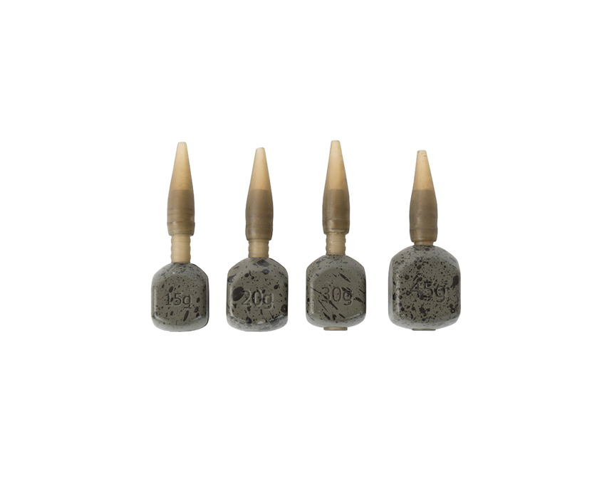 The stem remains on the line allowing the lead to be changed quickly and easily via the centrally located groove. This also ensures your rods are safe when packed away, simply remove your lead and wind in any slack line until the tail rubber rests against the tip ring of your rod. No more leads damaging your rod blank in transit. The Inline Match Cubes cast extremely well and will hold on sloping lake beds making them perfect for casting to far bank features and islands. The inline design also promotes self-hooking as the fish dislodges the heaviest part of the lead first, leading to more fish in the net. Available in 4 different sizes and supplied in packs of 2: 15g, 20g, 30g, 45g. The Inter Change System’ is a new dimension in feeder fishing. A comprehensive collection of feeders, bombs and associated products that allows the angler to alternate feeder sizes and weights without disassembling the entire rig.